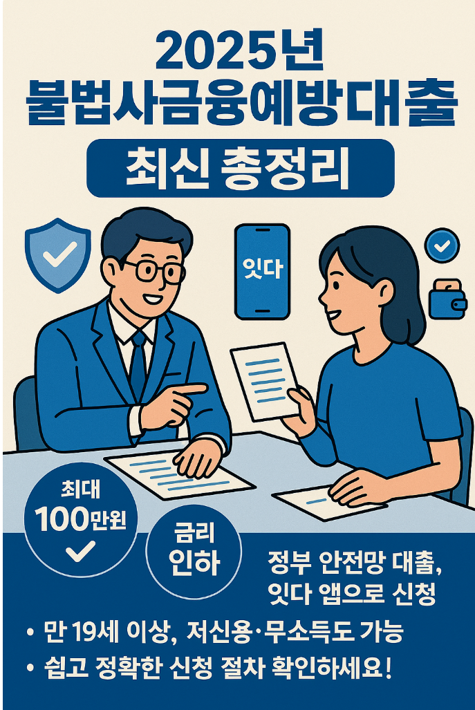 2025년 기준 불법사금융예방대출(구 소액생계비대출)의 자격·한도·금리·신청 절차를 최신 내용으로 정리했습니다. 신용이 낮거나 소득이 없어도 합법적으로 활용할 수 있는 정부 안전망 대출 가이드예요.